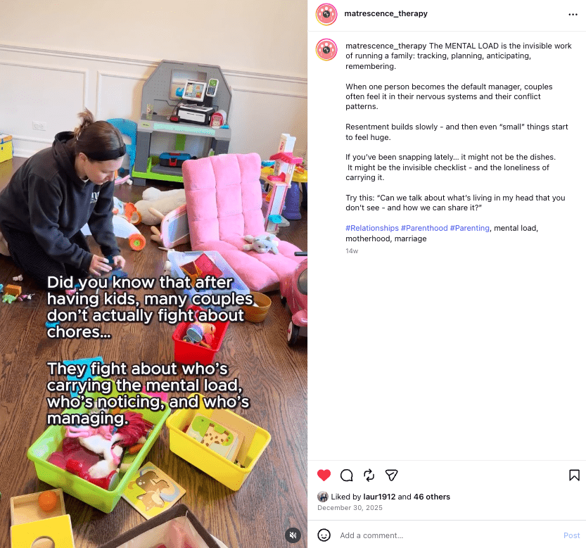 Social media gives a therapy practice room to sound like itself. Reels, carousels, and other content formats help bring the brand’s values, perspective, and personality into the mix in a way a website alone usually can’t. Since people are already on social media to laugh a little, learn something, and feel seen, our content leans into that rhythm. We use trends when they make sense, create relatable videos, and build carousels that teach in a fun way. The goal is content that feels easy to connect with, easy to share, and memorable enough that the brand starts to feel familiar before someone ever reaches out.