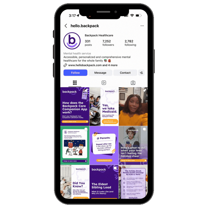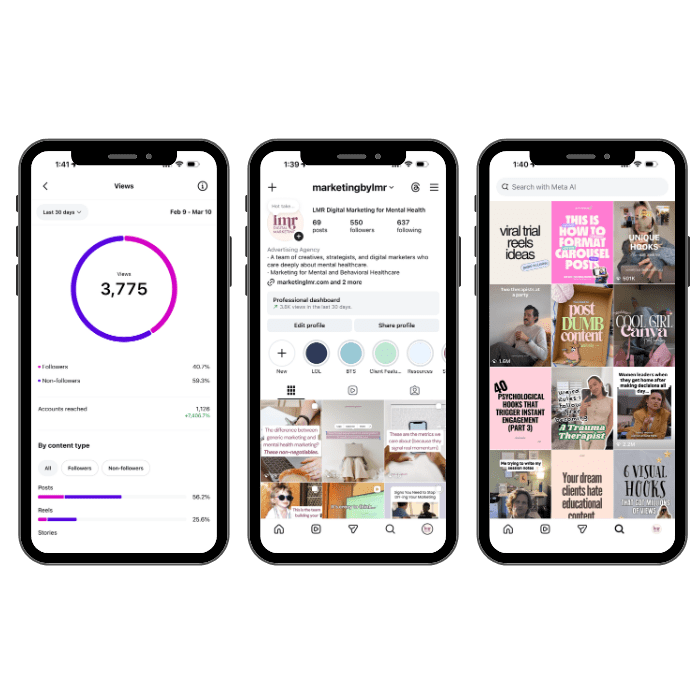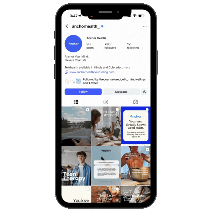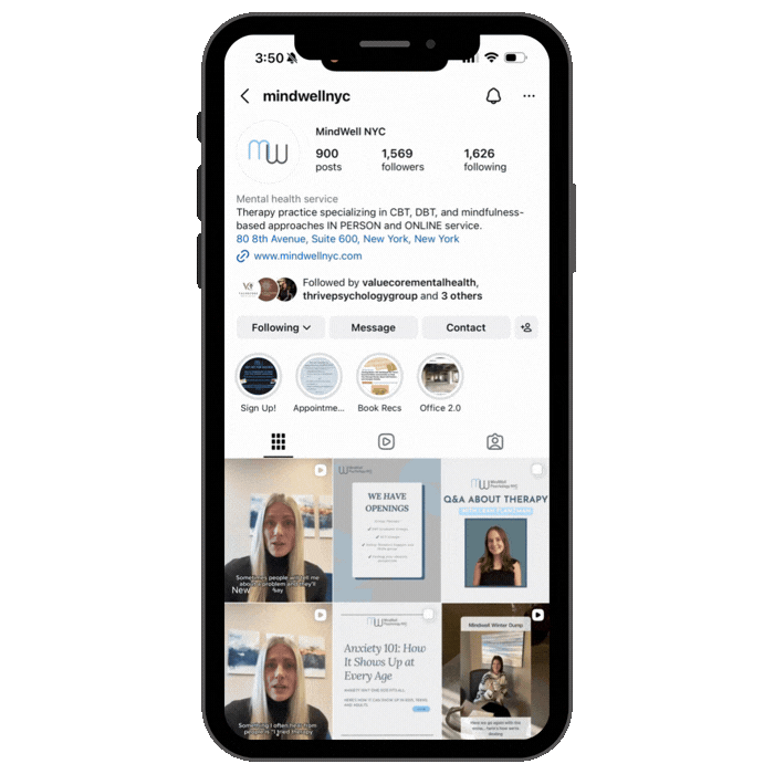 For mental healthcare brands, social media plays an important role in building trust and credibility. Many people researching therapy don’t discover a practice in just one place, they move through an ecosystem of touchpoints, from Google searches to websites to social media profiles. When someone finds your practice, social media is often one of the places they check before deciding to reach out. A consistent presence helps reinforce your brand and round out the experience, ensuring your online presence works together as a cohesive path toward contact.